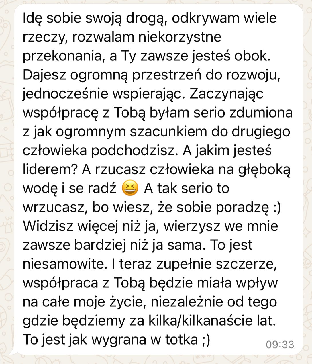 Nie działasz już z lęku ani poczucia obowiązku – działasz z mocy, spójności i klarowności. Masz plan, który Cię wspiera, finanse, które rosną, i markę, która wyróżnia Cię na tle innych.